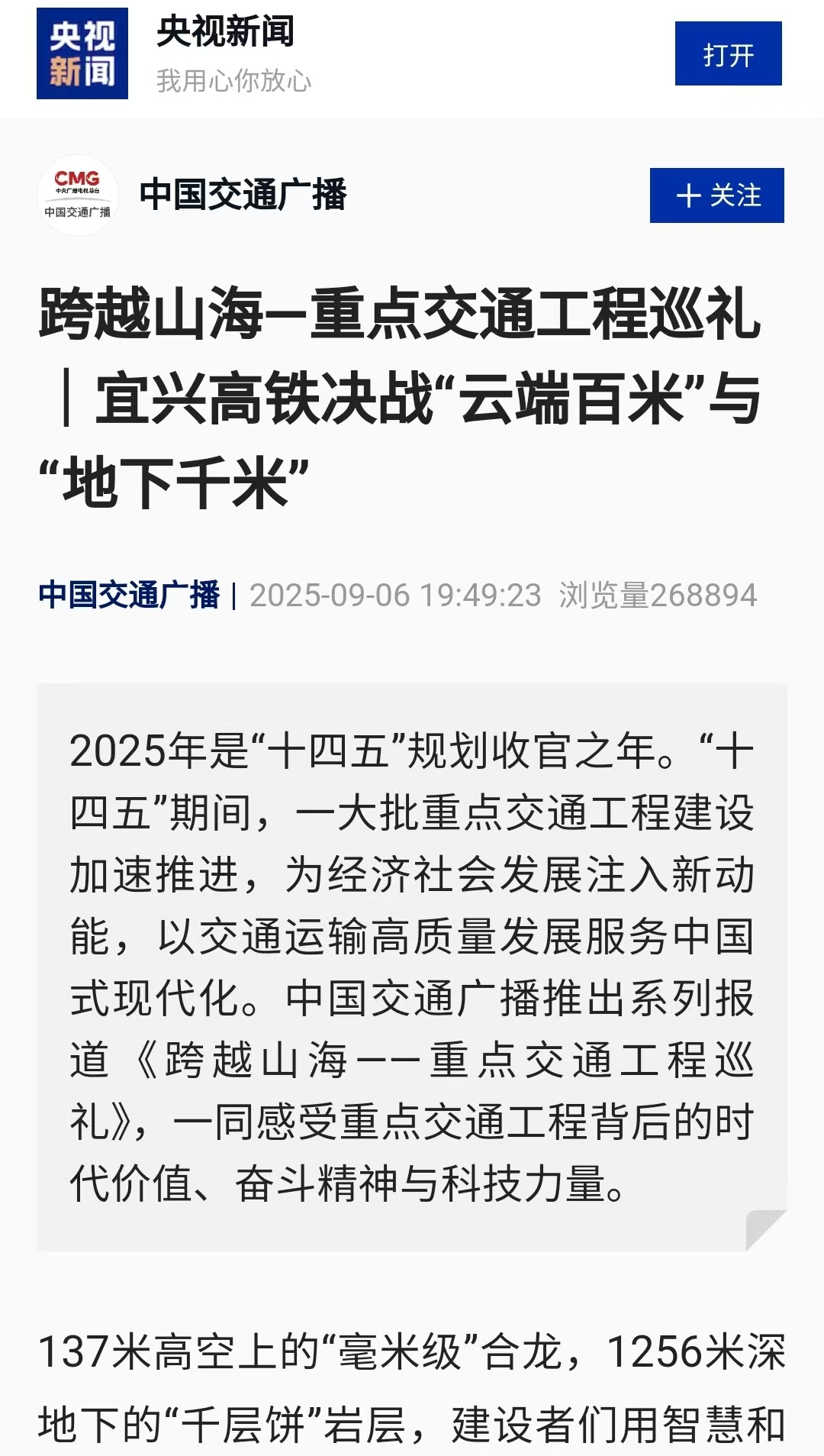 137米高空上的“毫米级”合龙,1256米深地下的“千层饼”岩层,建设者们用智慧和汗水在鄂西群山间凿出一条高铁通途。在湖北兴山宜兴高铁施工现场,高岚河特大桥137米高的桥墩耸入云端,相当于45层楼的高度,建设者们在这“云端百米”之上进行着高空作业。而在他们脚下,一条全长16.88公里的“地下长城”正在向大山深处延伸。宜兴高铁3标项目具有“高温、高桥墩、高边坡、高瓦斯、高地应力”五高特点。“第一次上来腿都软,但我们临边安全防护措施很到位,现在已经习惯了,心里很安全。”一位中铁隧道局的施工人员说。云端筑桥:当时国内在建高铁“第一高桥”宜兴高铁作为国家重点项目,是打通鄂西交通脉络的关键工程。其控制性....