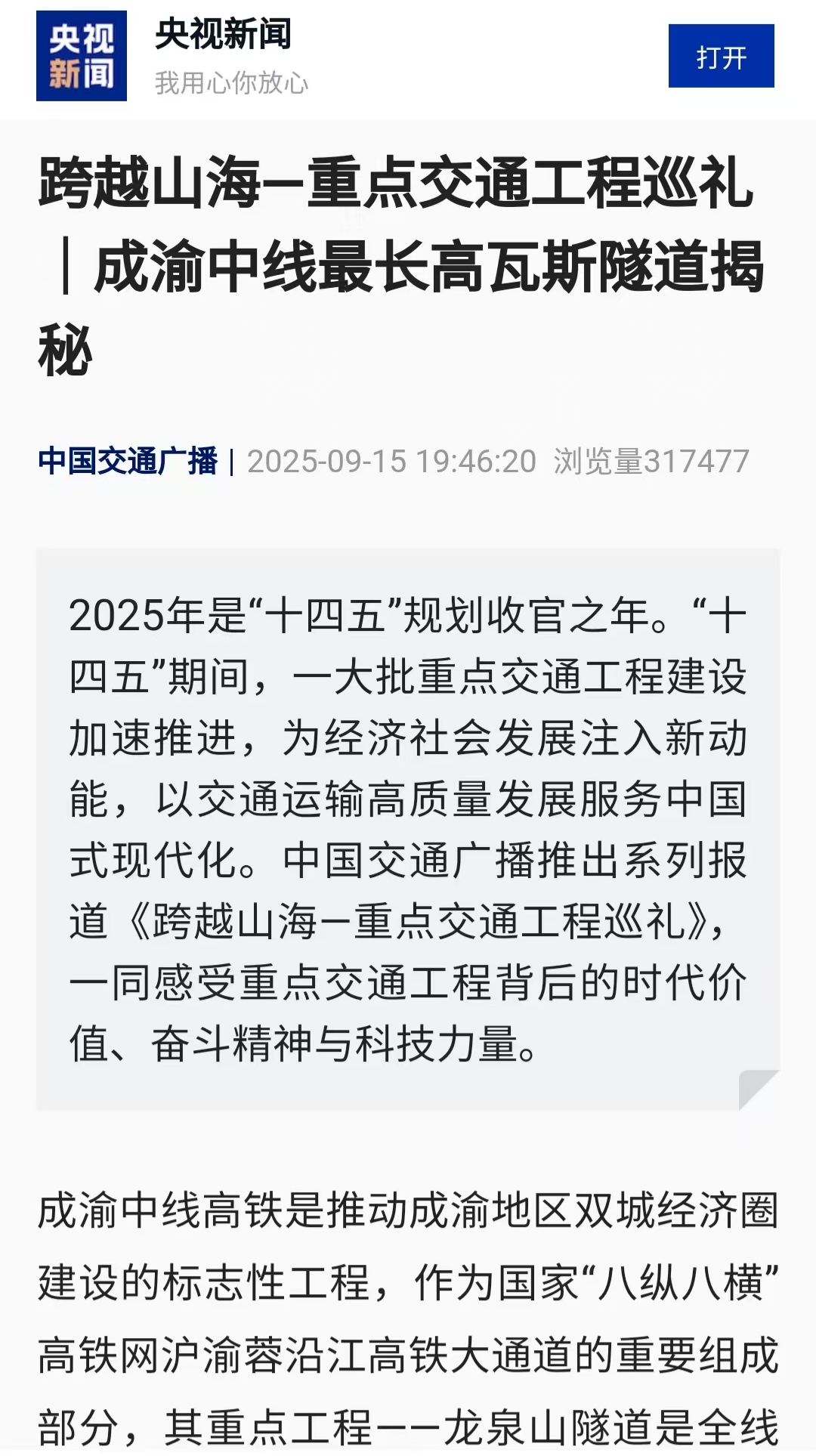 【央视新闻】跨越山海—重点交通工程巡礼|成渝中线最长高瓦斯隧道揭秘