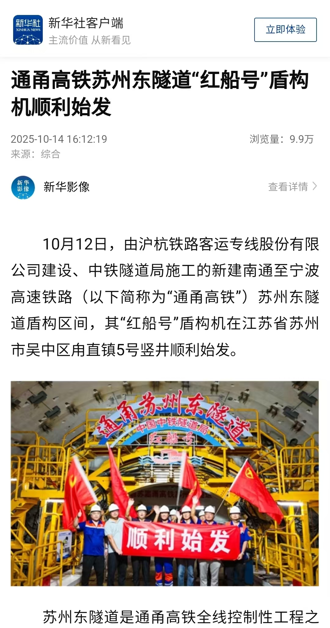 【新华社】通甬高铁苏州东隧道“红船号”盾构机顺利始发