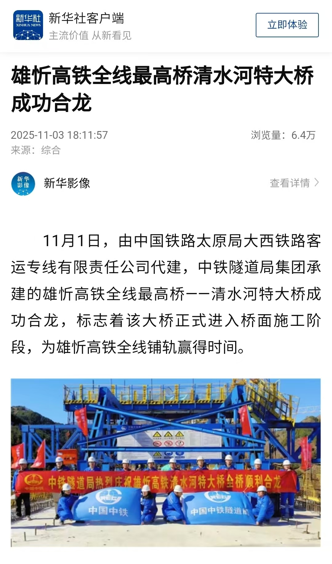 【人民日报】雄忻高铁清水河特大桥顺利合龙