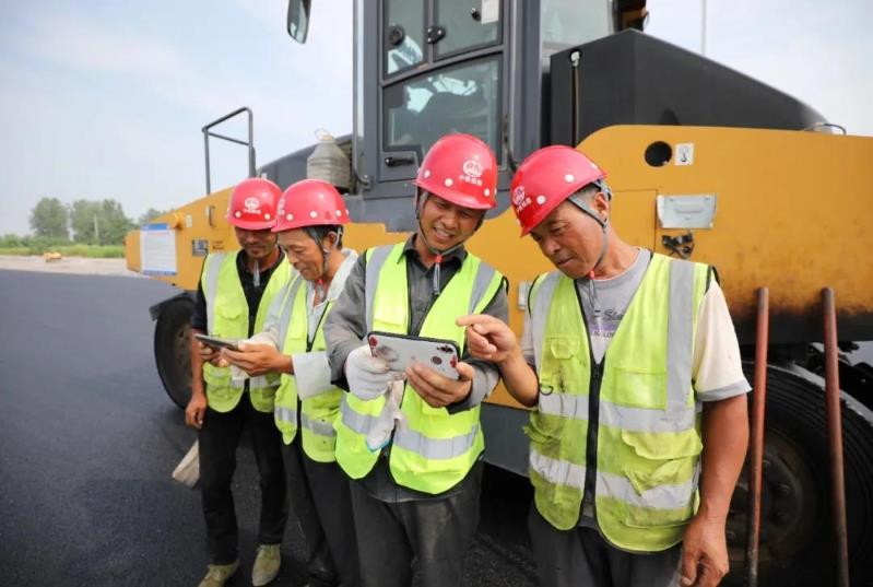 ▲中铁四局四公司淮南PPP项目部员工用手机收看直播